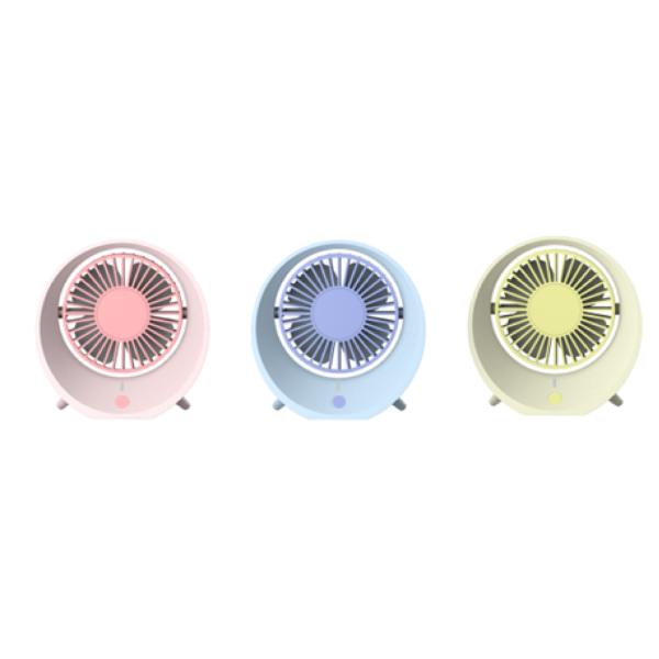 This portable rechargeable fan is powered by a 1200mAh lithium battery and features a brushless motor for quiet and efficient operation. The fan supports three wind-speed settings to meet different cooling needs. With an input voltage of 5V, the fan requires approximately 4 hours for a full charge and provides 1-3 hours of usage time depending on the selected speed. Constructed from ABS+PP+electronic components, the fan is durable and lightweight, available in blue, pink, and yellow, the fan is ideal for personal cooling on the go.